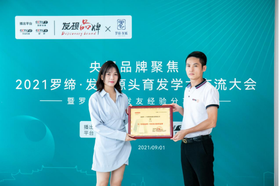 罗缔发域获得“央视《发现品牌》栏目重点推荐品牌”殊荣,由央视《发现品牌》栏目组肖科长亲自为罗缔发域品牌代表杨林玲女士进行授牌,并合影留念。