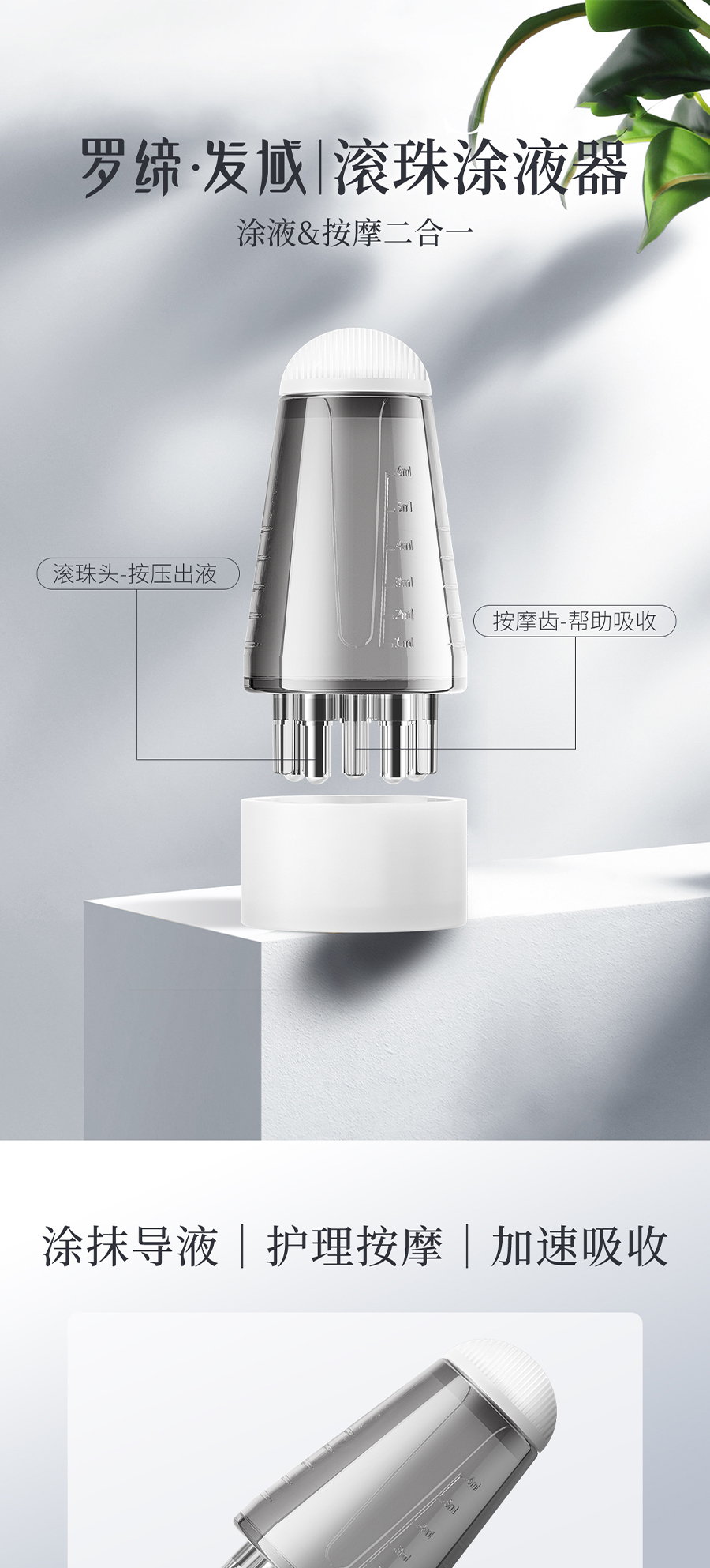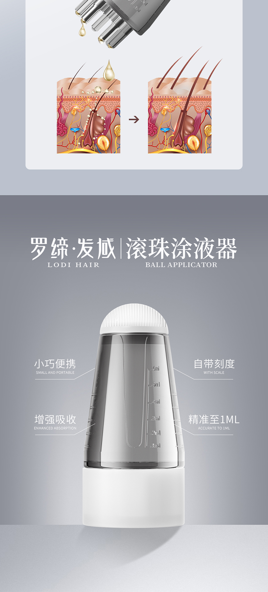 Ball applicator适宜人群:各种类型脱发人群。 作 用:罗缔·发域迷你导液梳是一款方便、高效的头发护理神器。采用头皮育发精华、按摩护理、涂抹导液等多重技术,专门针对脱发、发质枯黄等问题,为你提供全面护理。不仅小巧便携,能轻松携带出游或者出差,让你轻松拥有健康亮泽的发丝,重拥自信动人的魅力!