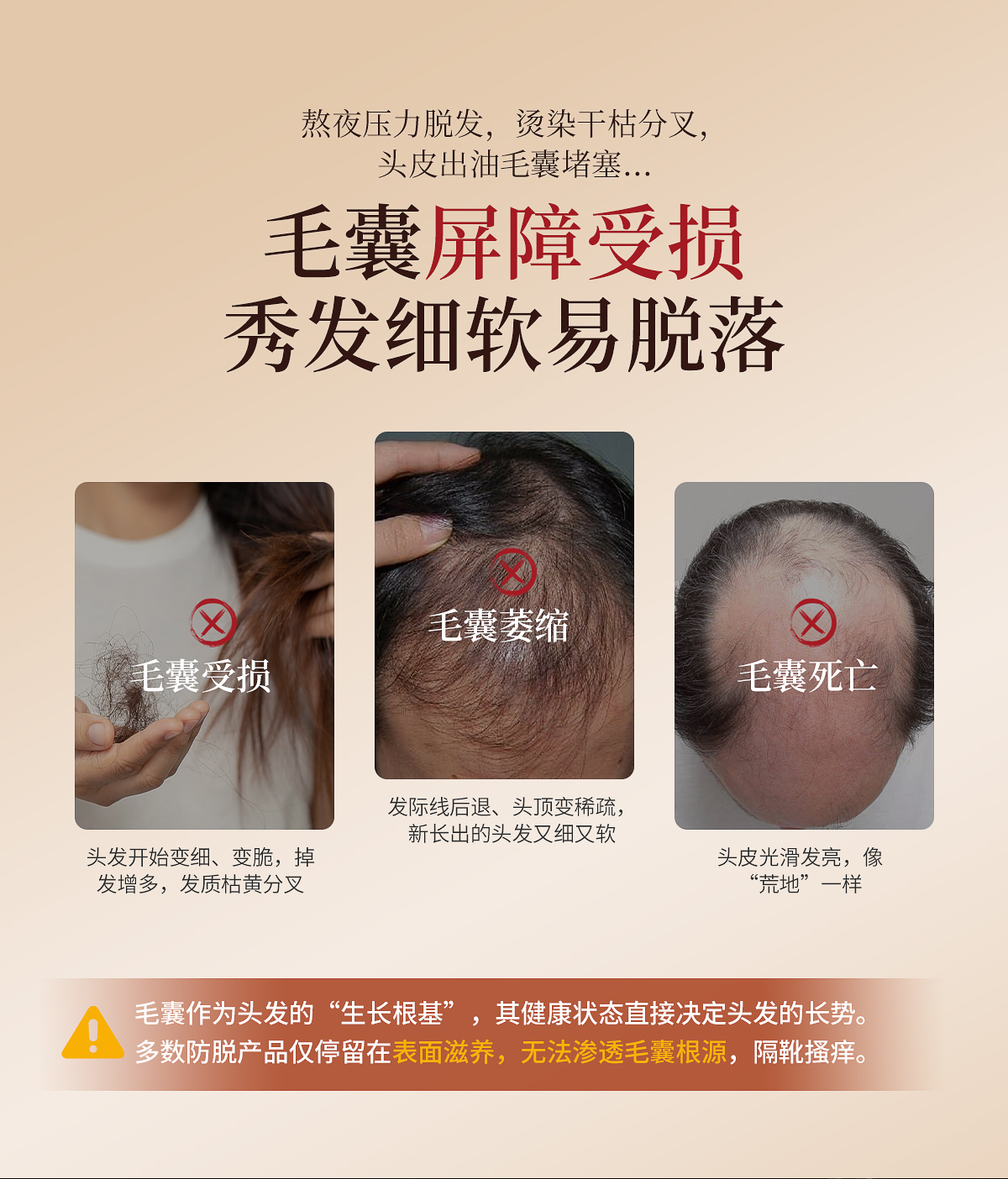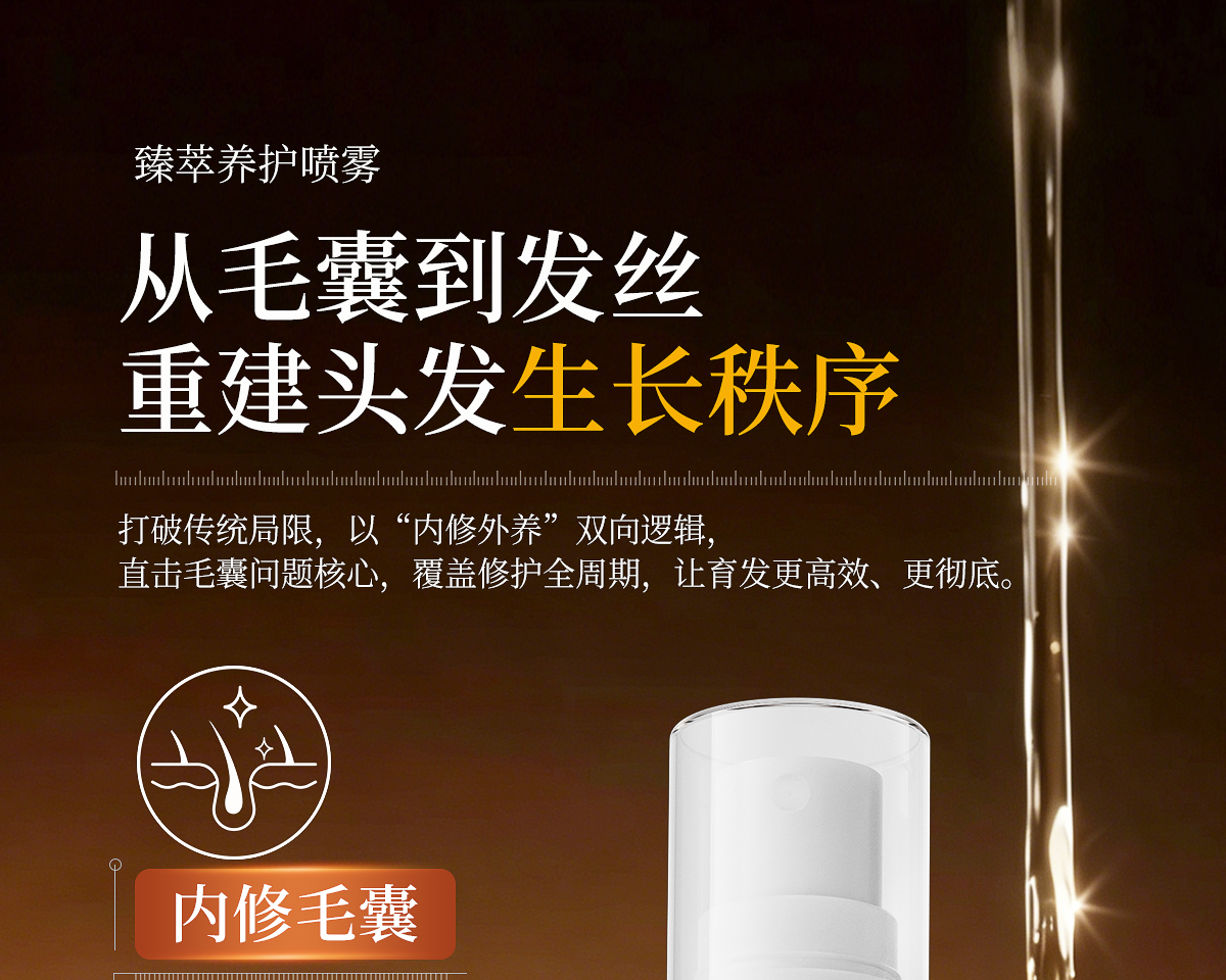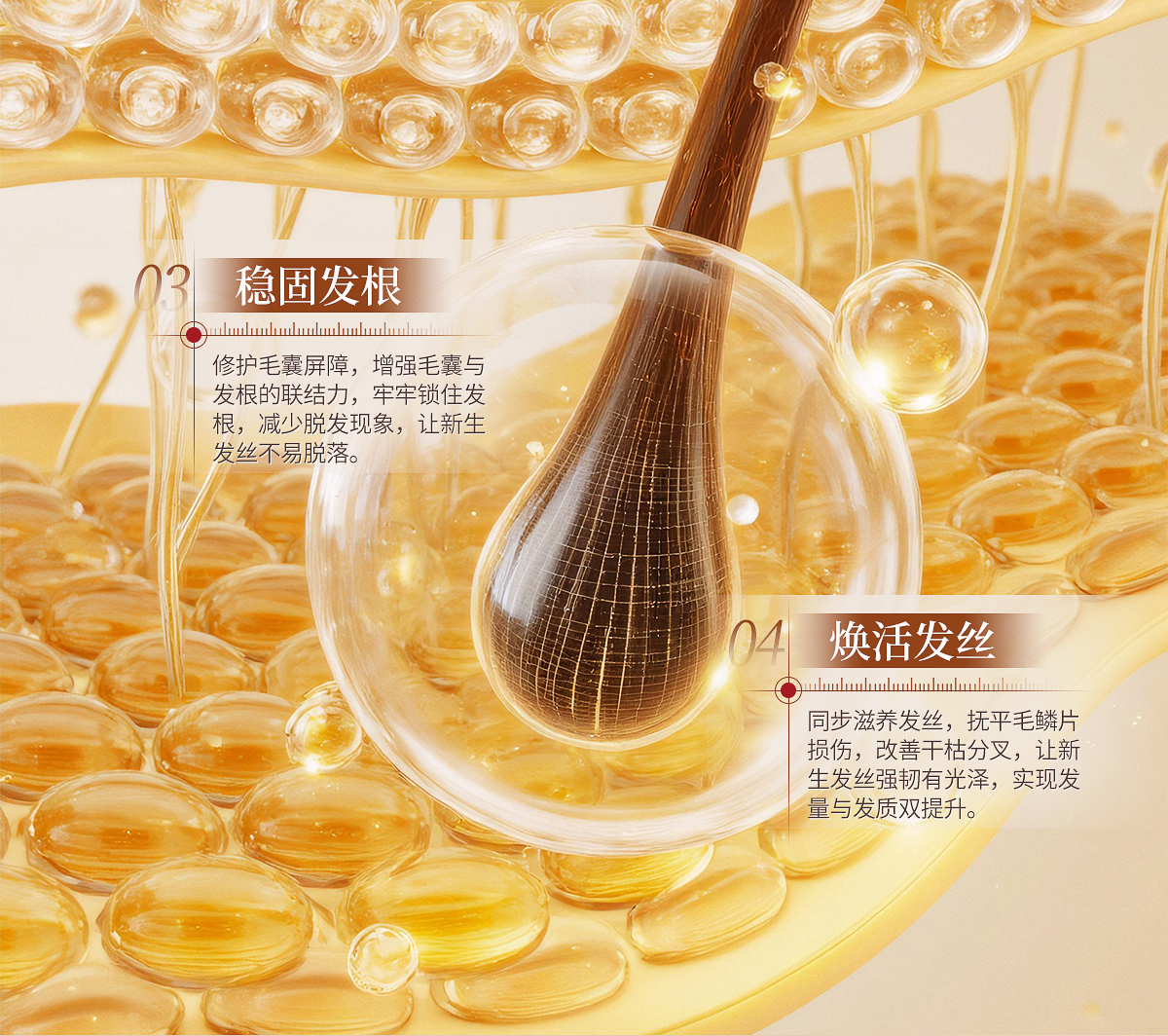 适宜人群:各种类型脱发人群。 作 用:柔顺护发配方,滋养修护发丝,改善分叉、受损秀发,让秀发丝柔盈亮油韧性