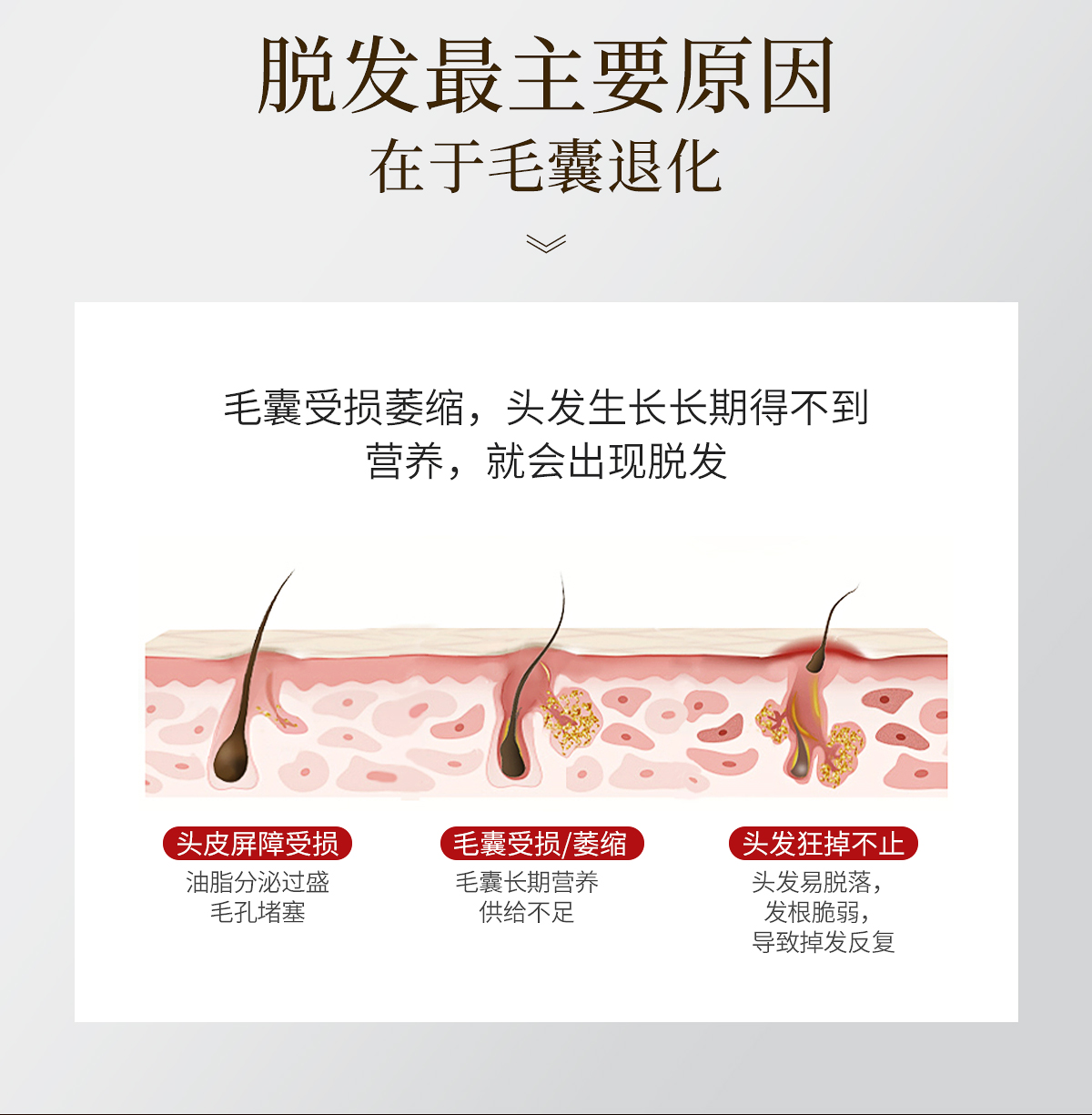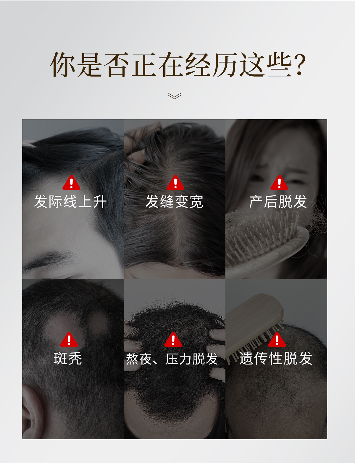 适宜人群:各种类型脱发人群。 作 用:含有当归根提取物、何首乌根提取物、侧柏叶提取物等草本植萃,柔润呵护发丝,润养头皮,养成坚韧发根,坚持使用减少脱发。