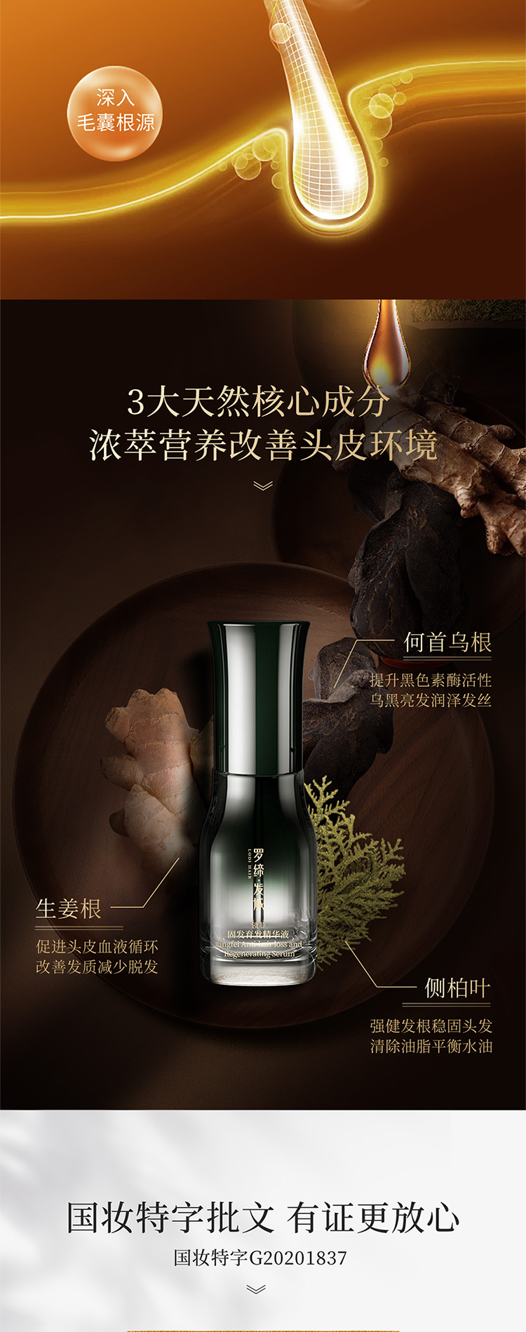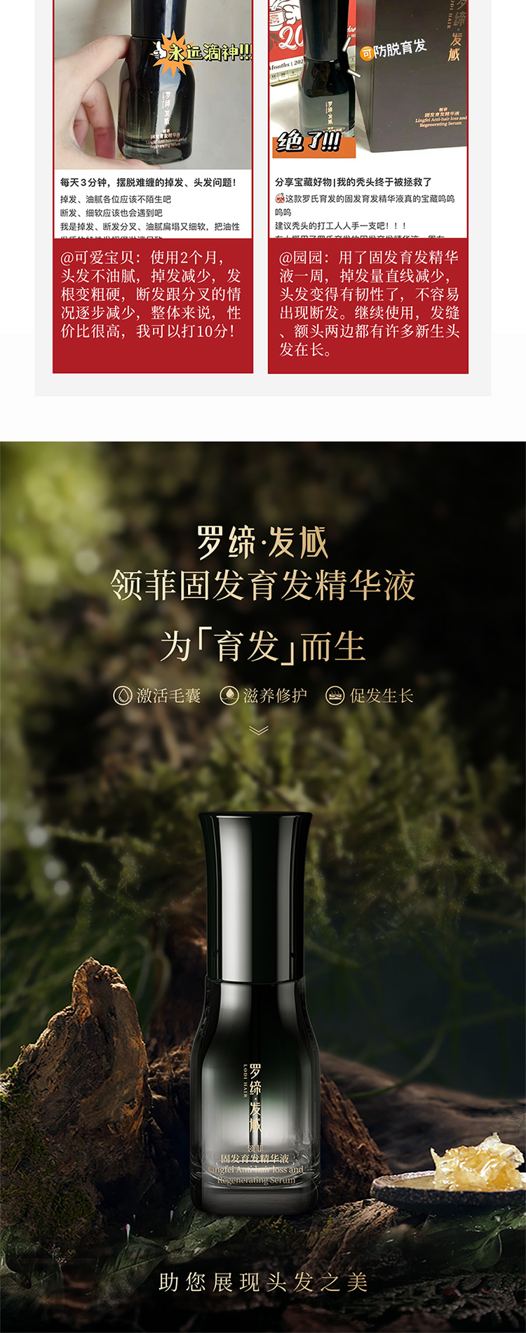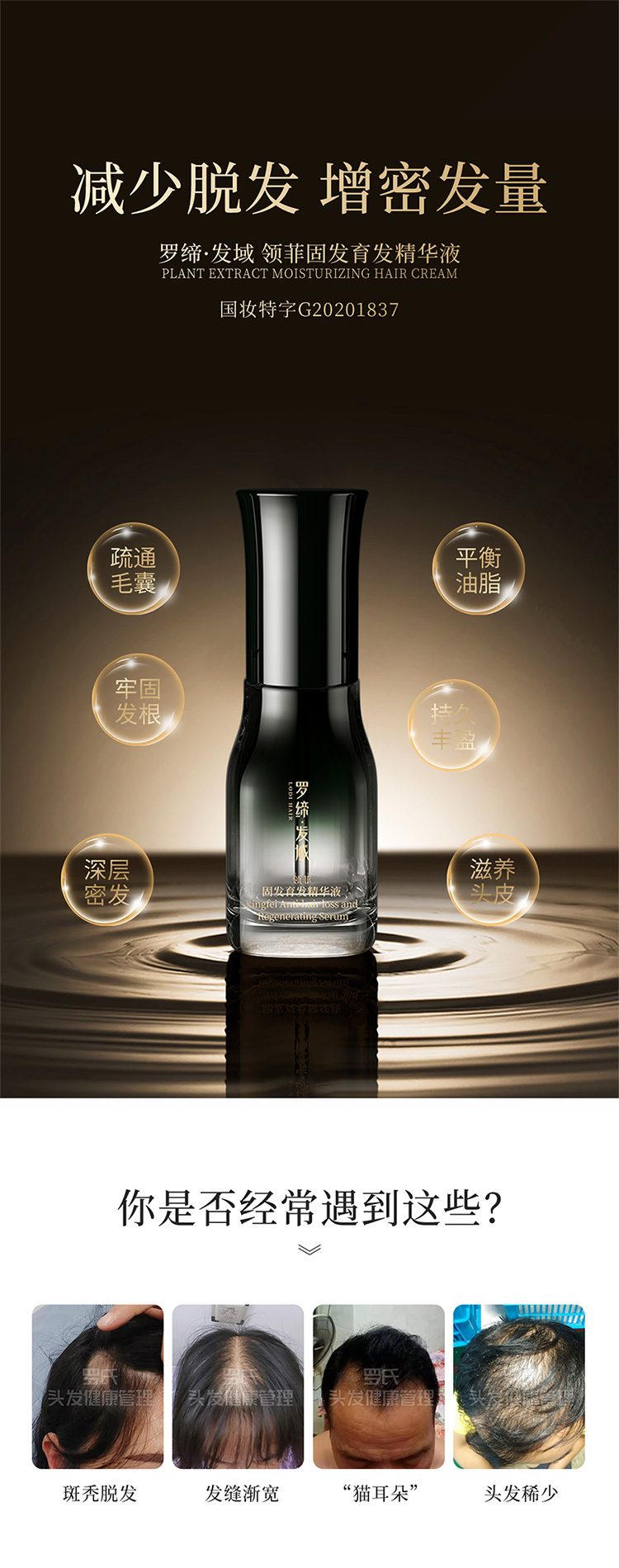 作 用:本品凝集多种防脱育发植萃精华,修护发根稳固头发,减少头发脱落,保护发量,同时改善头皮油脂分泌,令秀发舒适清爽,保持盈养乌亮。